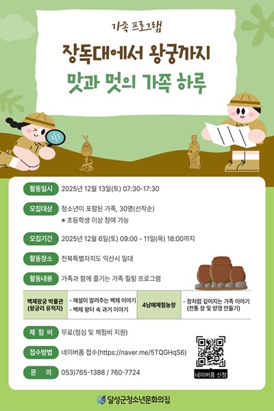 모집대상: 청소년이 포함된 가족, 30명(선착순)