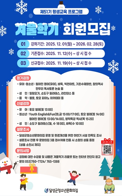 [모집] 제51기 겨울학기 평생교육강좌 회원 모집