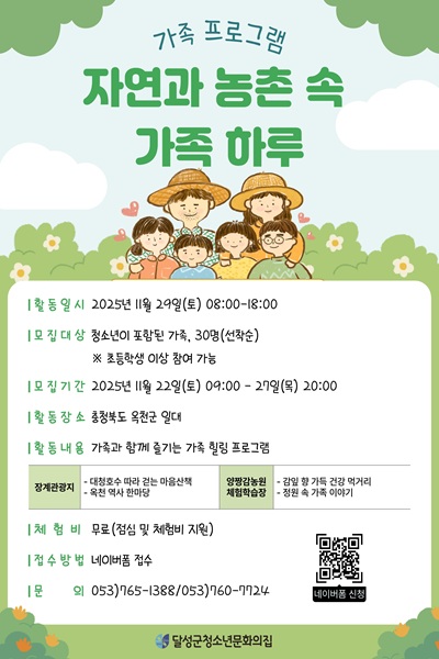 가족 프로그램 참가자를 모집합니다.